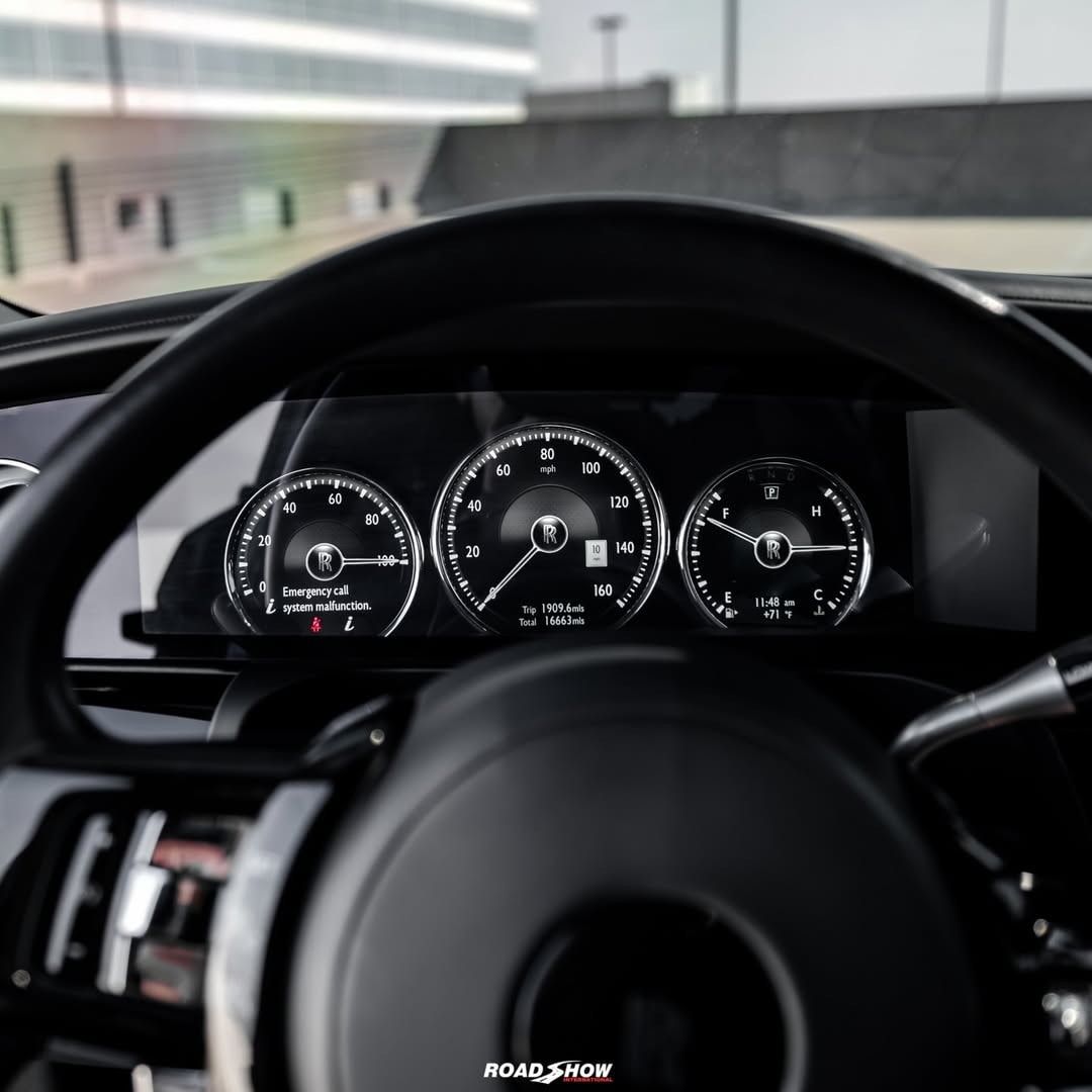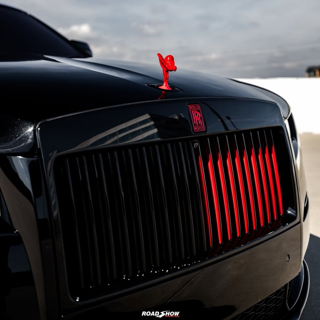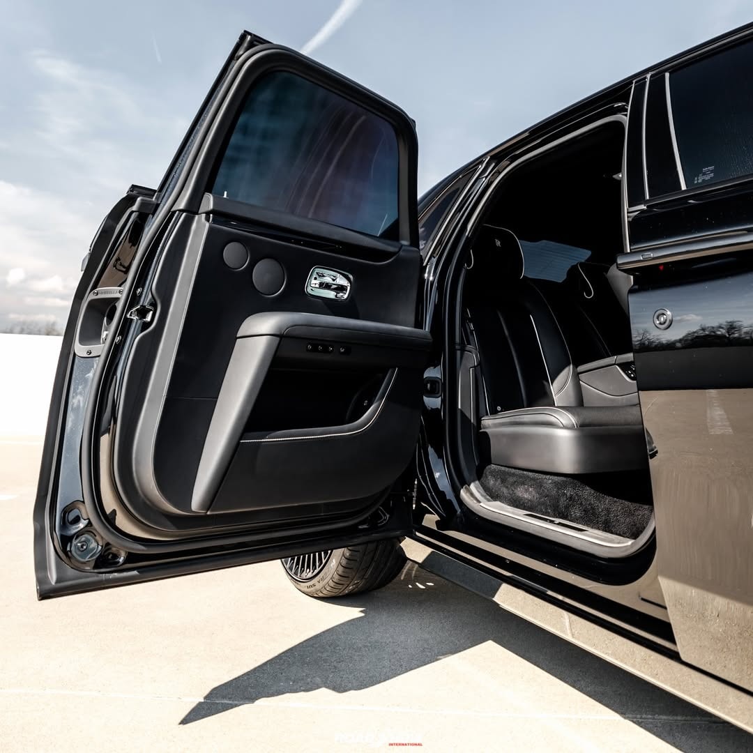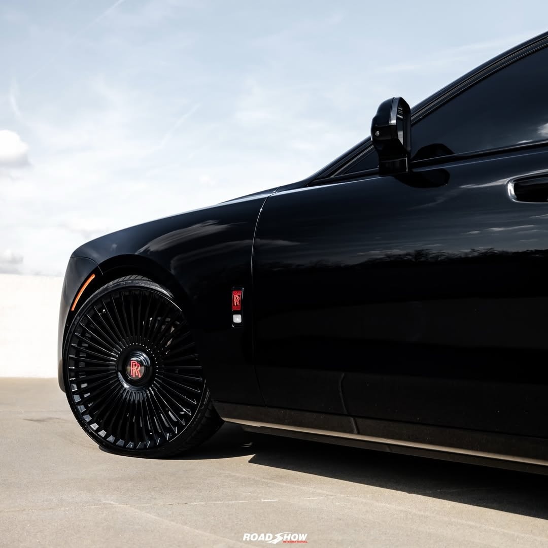 The Rolls-Royce Ghost Series II shown by Road Show International in the media gallery wears a glossy black exterior, interrupted by red details placed carefully rather than everywhere.